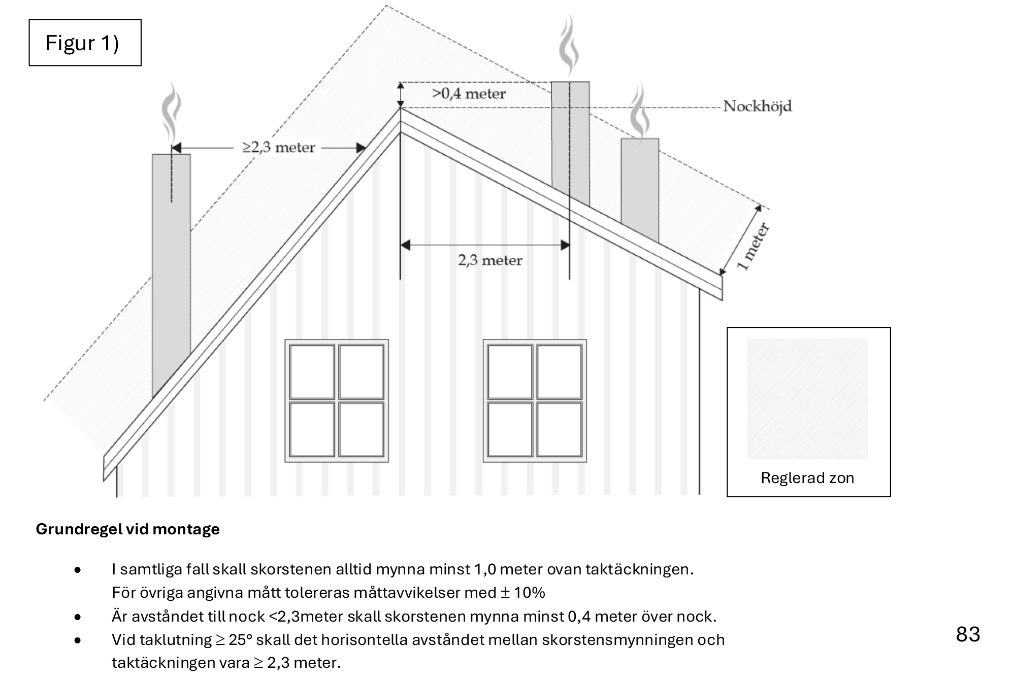 En skorsten ska inte bara ge bra drag för elden – den måste också uppfylla gällande regler för säkerhet och funktion. Boverkets föreskrifter ställer bland annat krav på hur skorstenen ska mynna över taket för att minska brandrisk, samt att rökkanaler och avgaskanaler är tillräckligt täta för att förhindra farliga utsläpp.