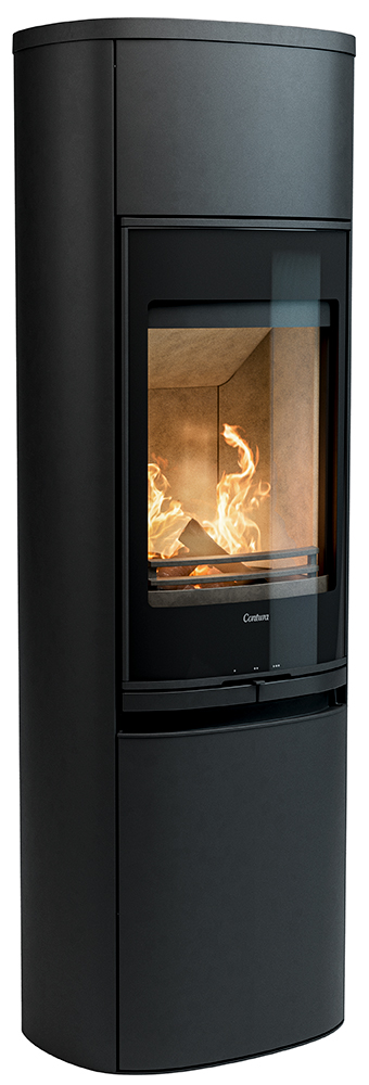 Contura 990G Style är en hög kamin som bygger vidare på Conturas prisbelönta 800-kaminserie men i ett större format med ännu generösare glaspartier och en rymligare brännkammare. Resultatet är en kamin som låter elden ta huvudrollen samtidigt som den värmer med 6 kW nominell effekt. Den högt placerade eldstaden gör att elden syns bra även i större rum. På Contura 990 G har dörren en svart glasram som ramar in elden. Kaminen finns helt i svart, svart med täljstenstopp samt i vitt.