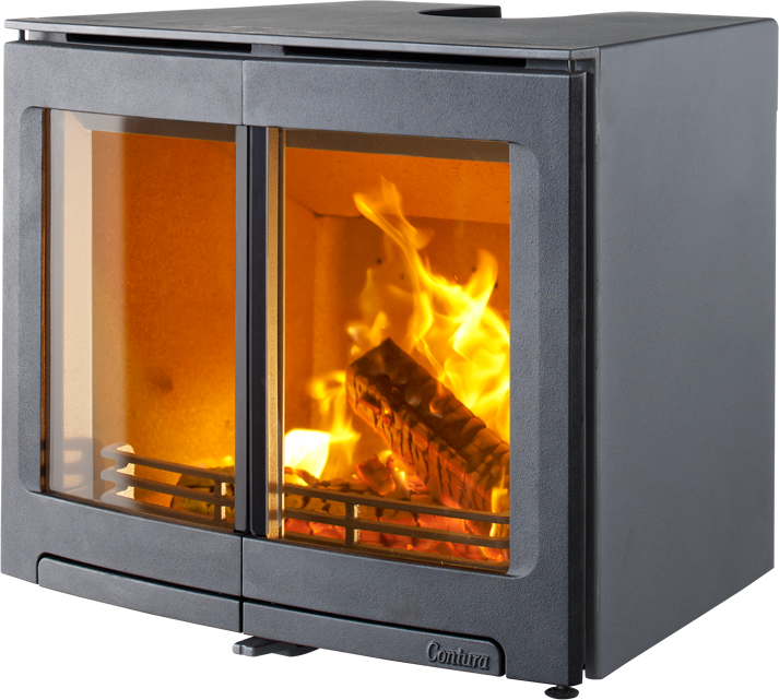 Contura i5 är en spiskassett för installation i öppen spis eller eldstadsöppning. Passar de flesta öppna spisar. Handtaget är integrerat i luckan och spjällreglaget är lättåtkomligt på framsidan. Spiskassetten med panoramalucka bjuder på stora glasytor vilket gör att elden syns ordentligt. Contura i5 med dubbellucka är perfekt för hörnspisar där stödjärn finns, då det kan vara ett hinder med stora luckor.