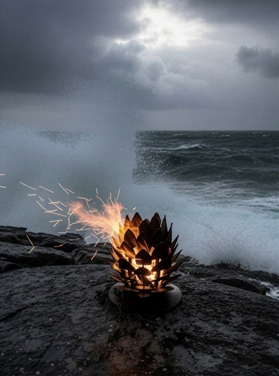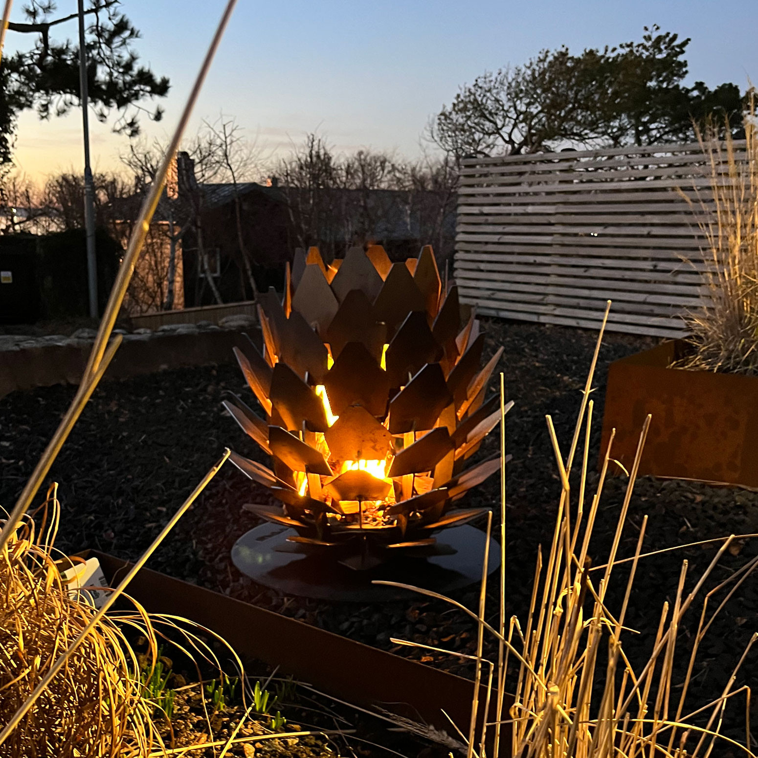 Sin organiska form är tidlösa och elegant, Inspirerad av den klassiska lampan ger den din trädgård en känsla av ren lyx när elden flammar upp mellan bladen. Den är anpassad för mindre ytor så som uteplatser och mindre trädgårdar.