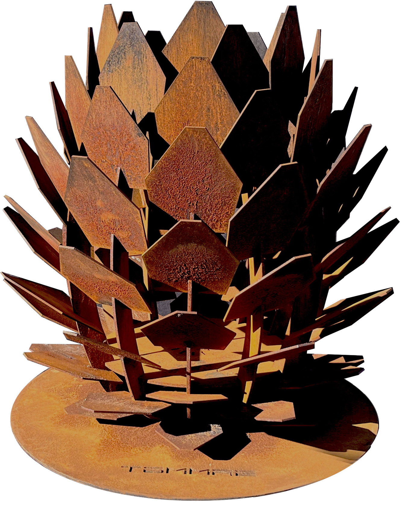 Eldkorgen Kotte är en tuff vedeldad eldkorg i cortenstål som blir ett vackert smycke för din trädgård och är lika vacker tänd som släkt.