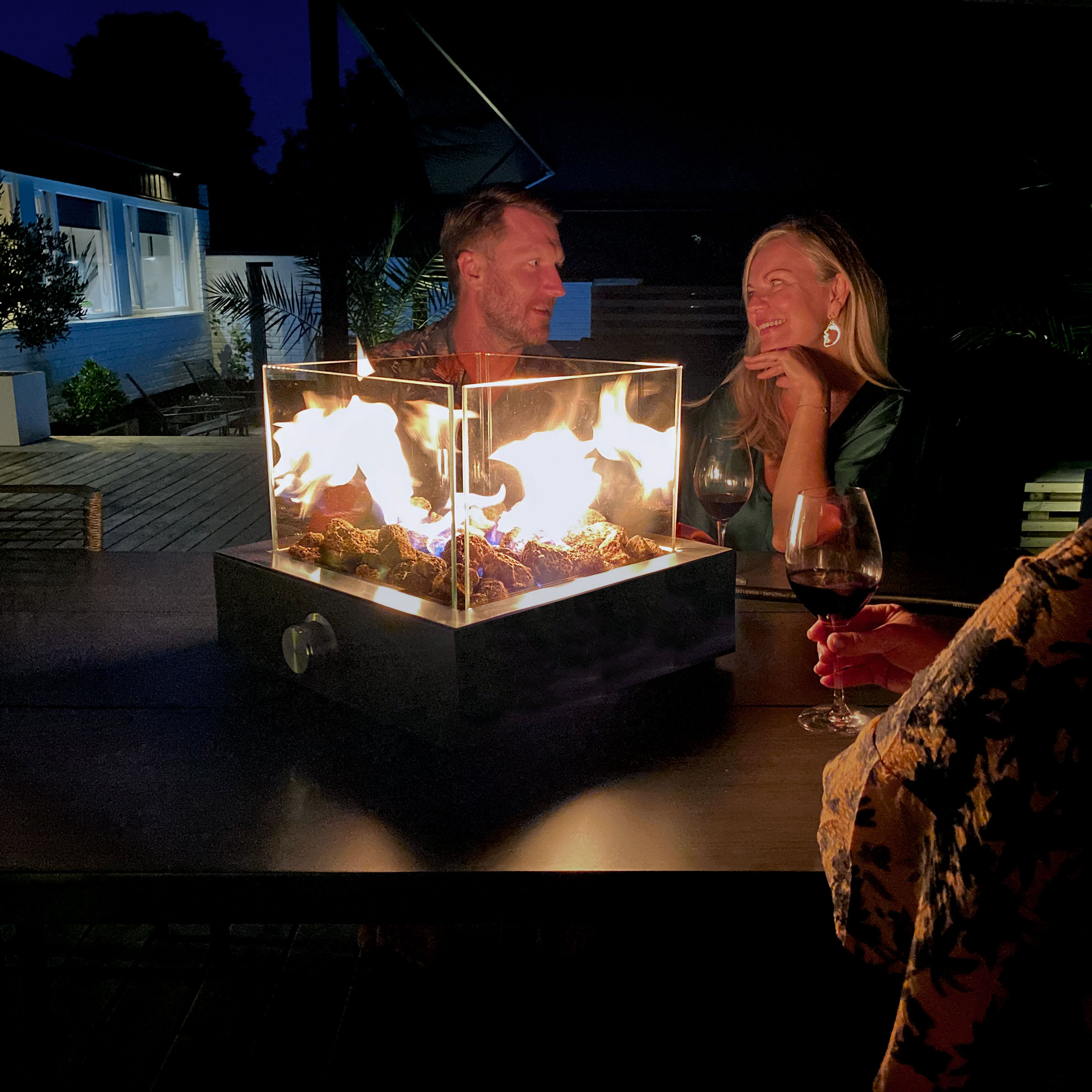 ELD gasolvärmare är en gasoldriven bordsmodell med synlig eld. Den stilrena kubistiska formen tillsammans med lågorna ger en stilfull och elegant känsla när man samlas runt bordet för att njuta av värmen från elden. Värmeeffekten är hög på 7kW och en 10kg gasoltub räcker i ca 20h på full effekt. Den gråa eller svarta fiberarmerade betongen möter borstade rostfria detaljer och skapar en vacker kontrast.