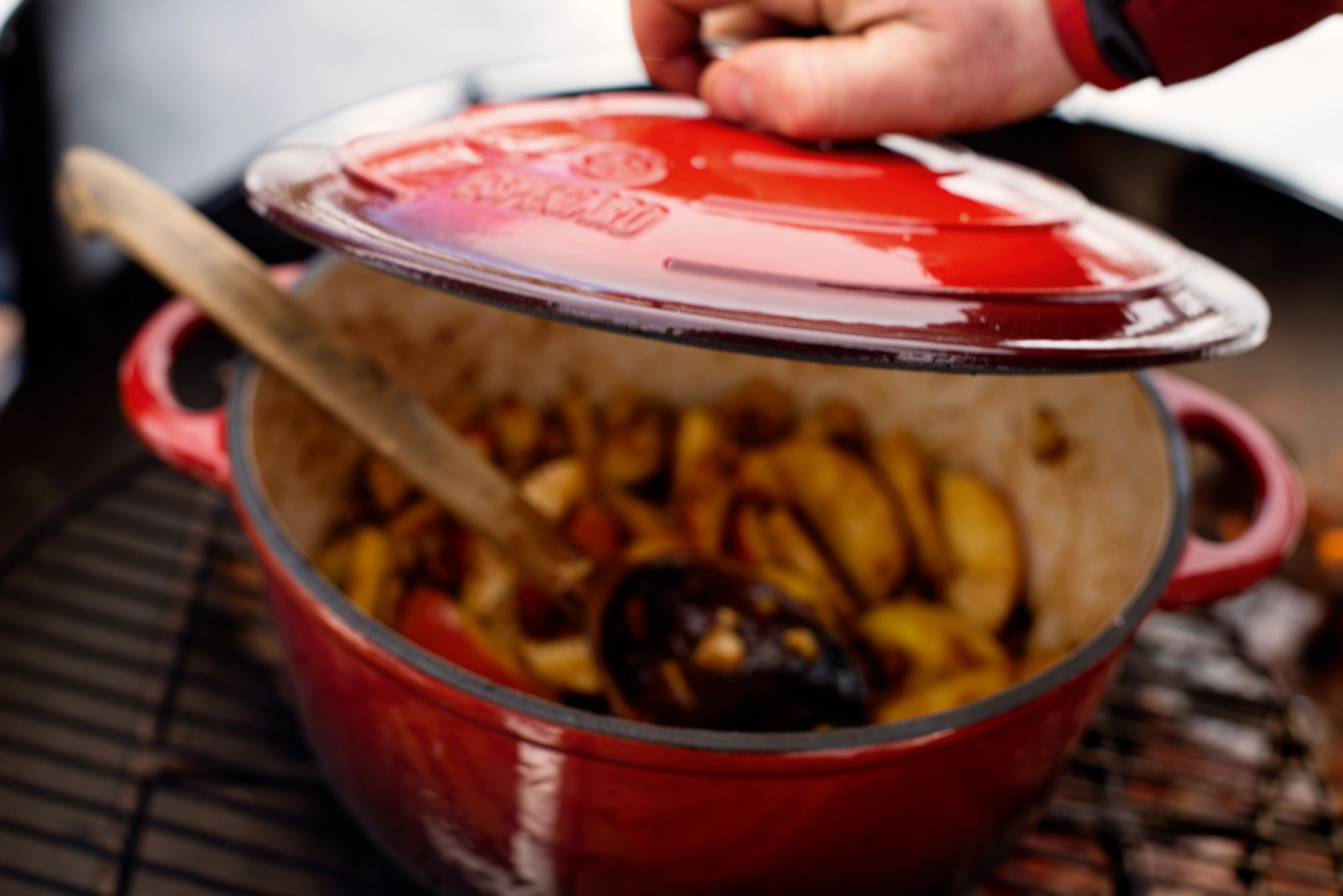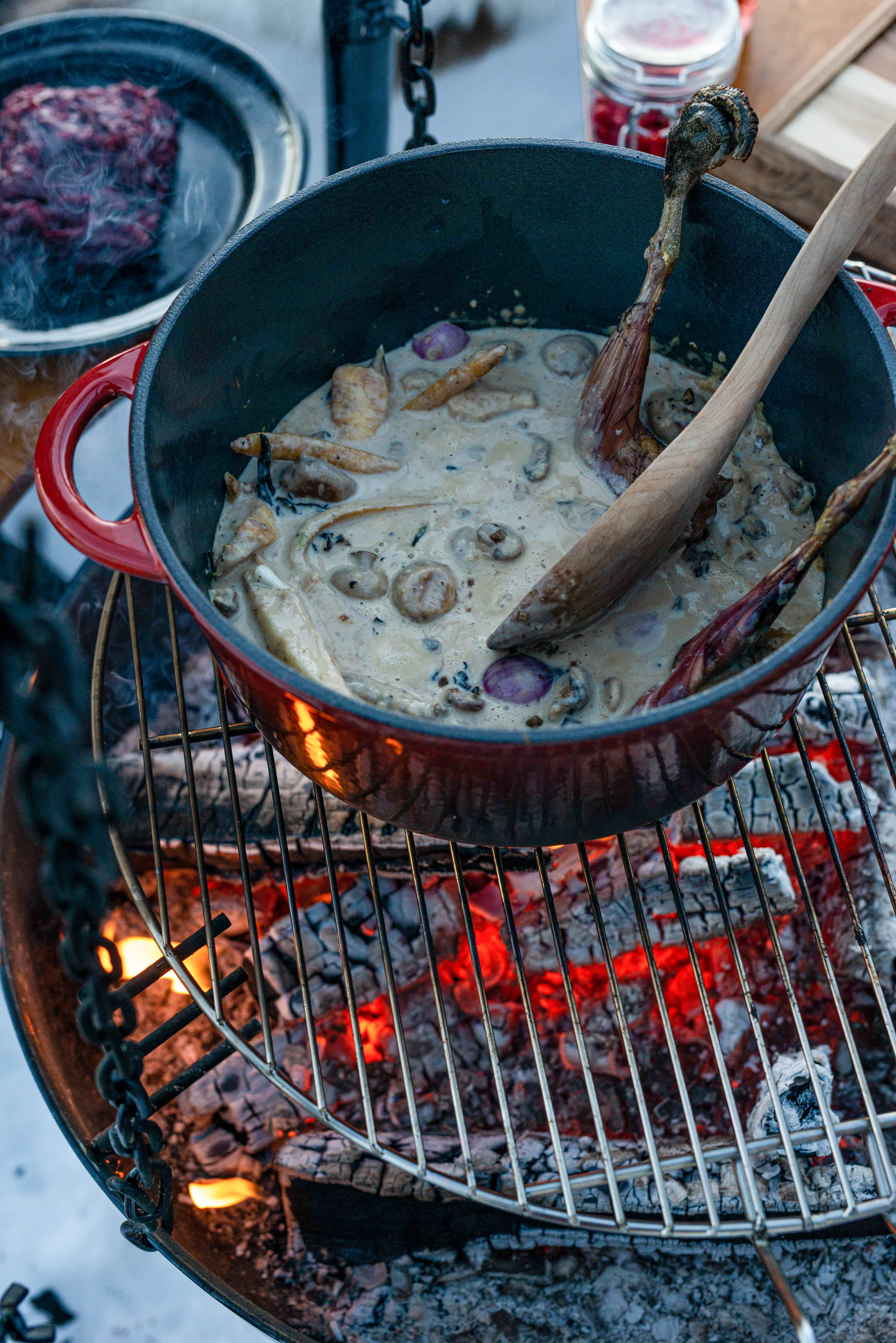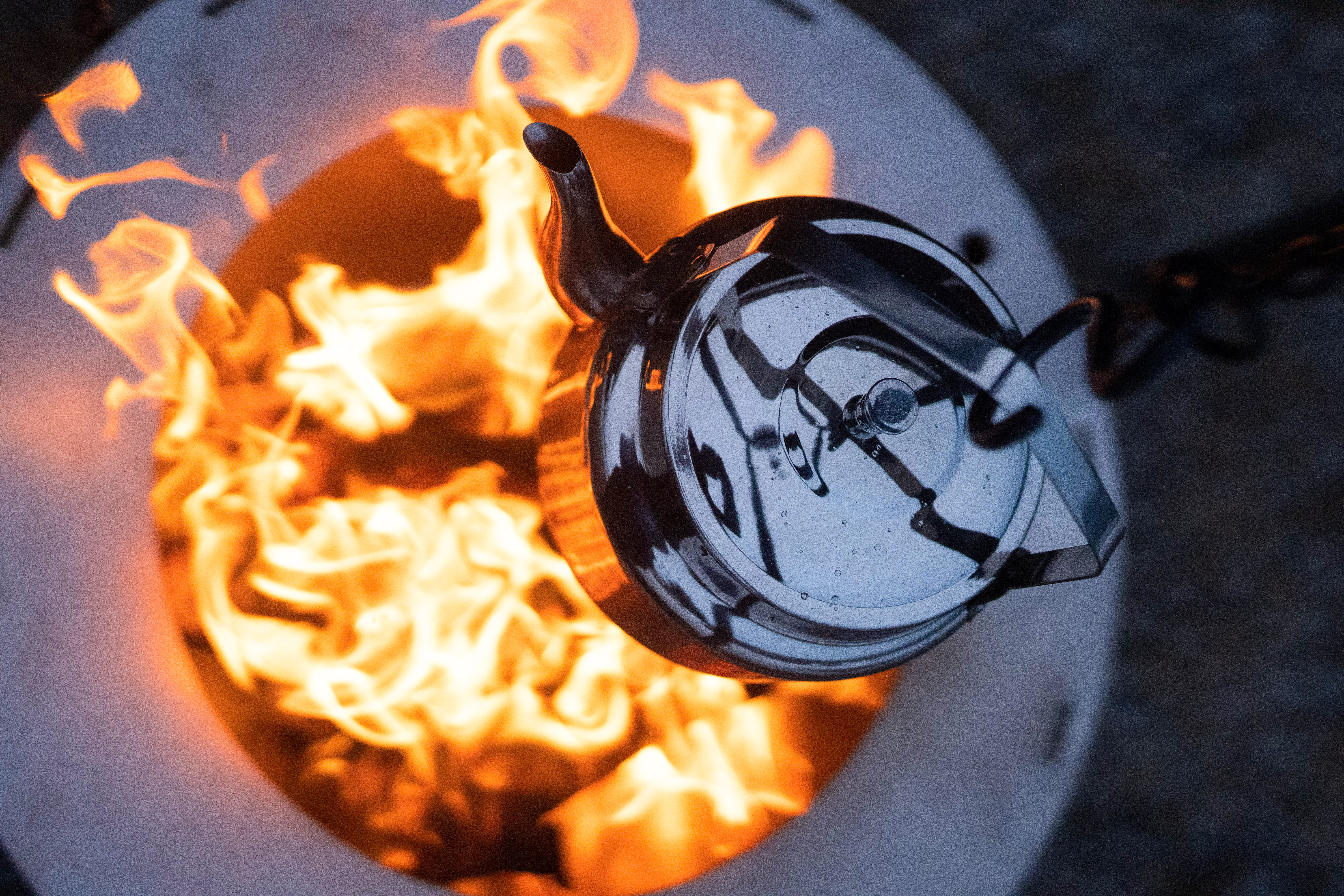 - Den justerbara upphängningskedjan gör det enkelt att hänga grytor och kaffepannor över elden.