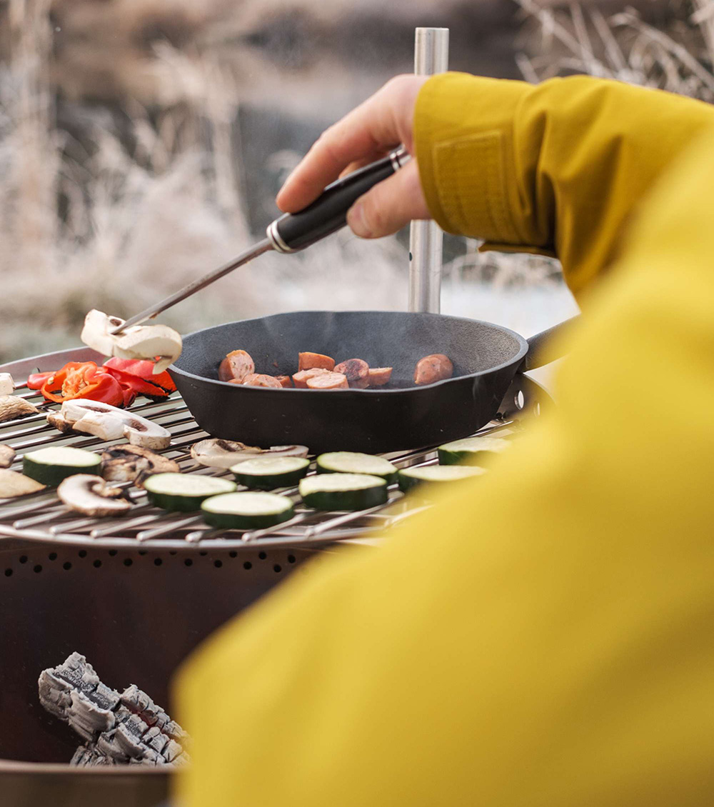 Vid försiktig eldning blir Eldtunna Brasa 50 en utmärkt plats att grilla på. Kombinera den med det praktiska grilltornet (tillval) för att skapa en mångsidig bålgrill där du kan steka, grilla och laga allt från enkla rätter till smakfulla bålmåltider. Tornet fästs smidigt i kanten av eldstaden, är justerbart i höjd och kan enkelt svängas undan från elden vid behov.