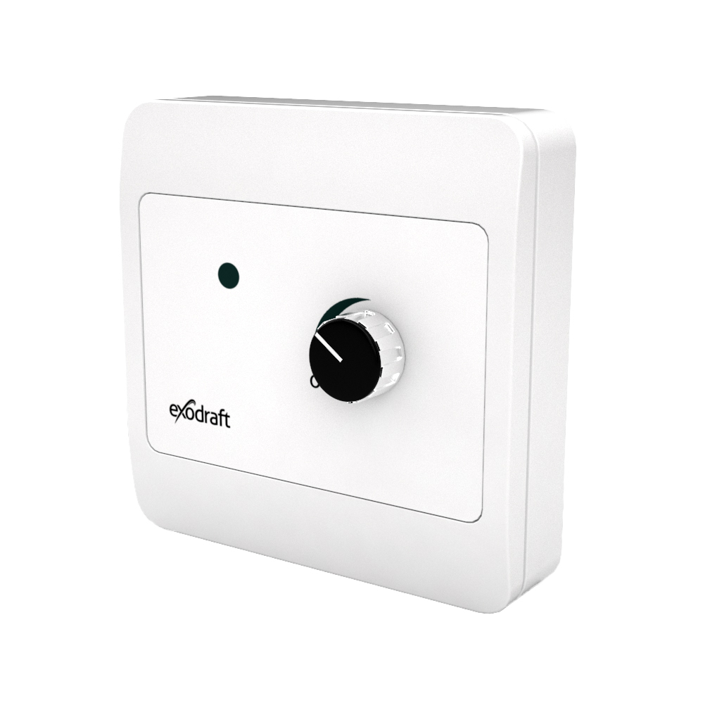 Exodrafts EFC16 är en elektronisk manuell styrningsenhet som ansluts till din Exodraft rökgasfläkt för att ge dig kontroll över rökgasfläkten. Med en EFC16 har du möjlighet att reglera rökgasfläktens kapacitet, och den kan variera från 25-100%, beroende på om du håller på med upptändning, lägger in ny ved eller löpande eldning. Styrningen har en vridknapp för hastighetsreglering samt en lysdiod som lyser när rökgasfläkten är i drift.