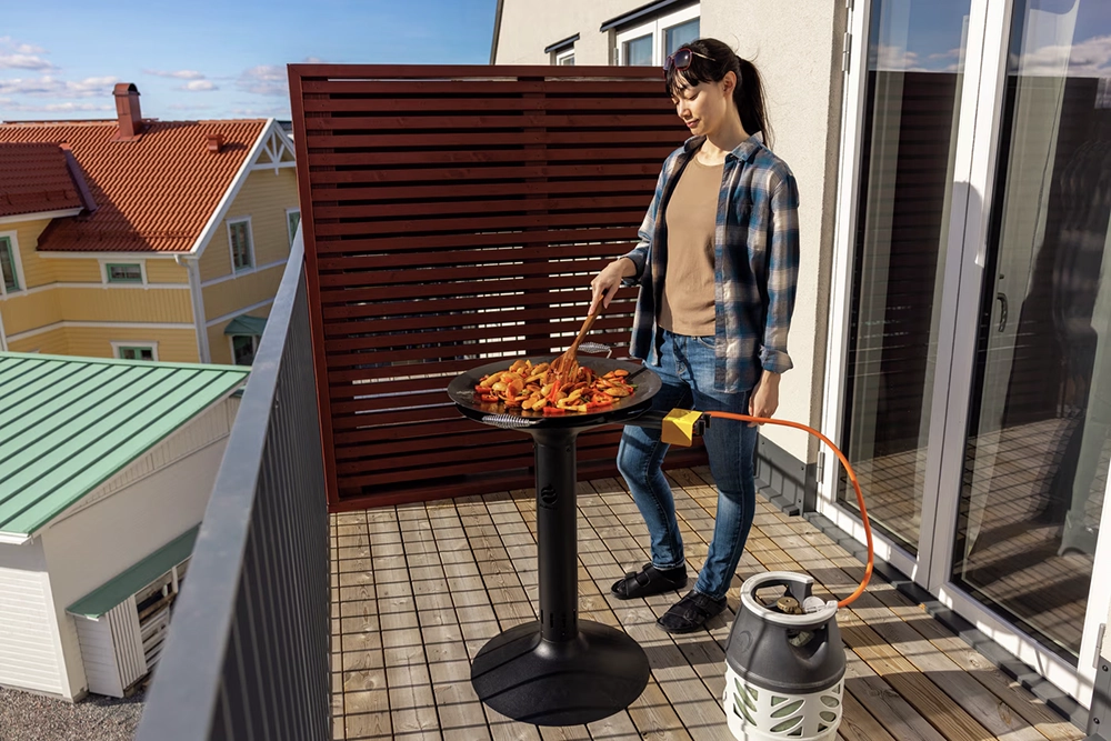 Upplev matlagning utomhus på riktigt – med Hällmarks nya pelarhäll kombineras gedigen konstruktion med snygg design. Den robusta pelarfoten står stabilt på trädäck och uteplatser, samtidigt som det integrerade vindskyddet gör att du kan laga mat utan störningar, även när det blåser lite.
