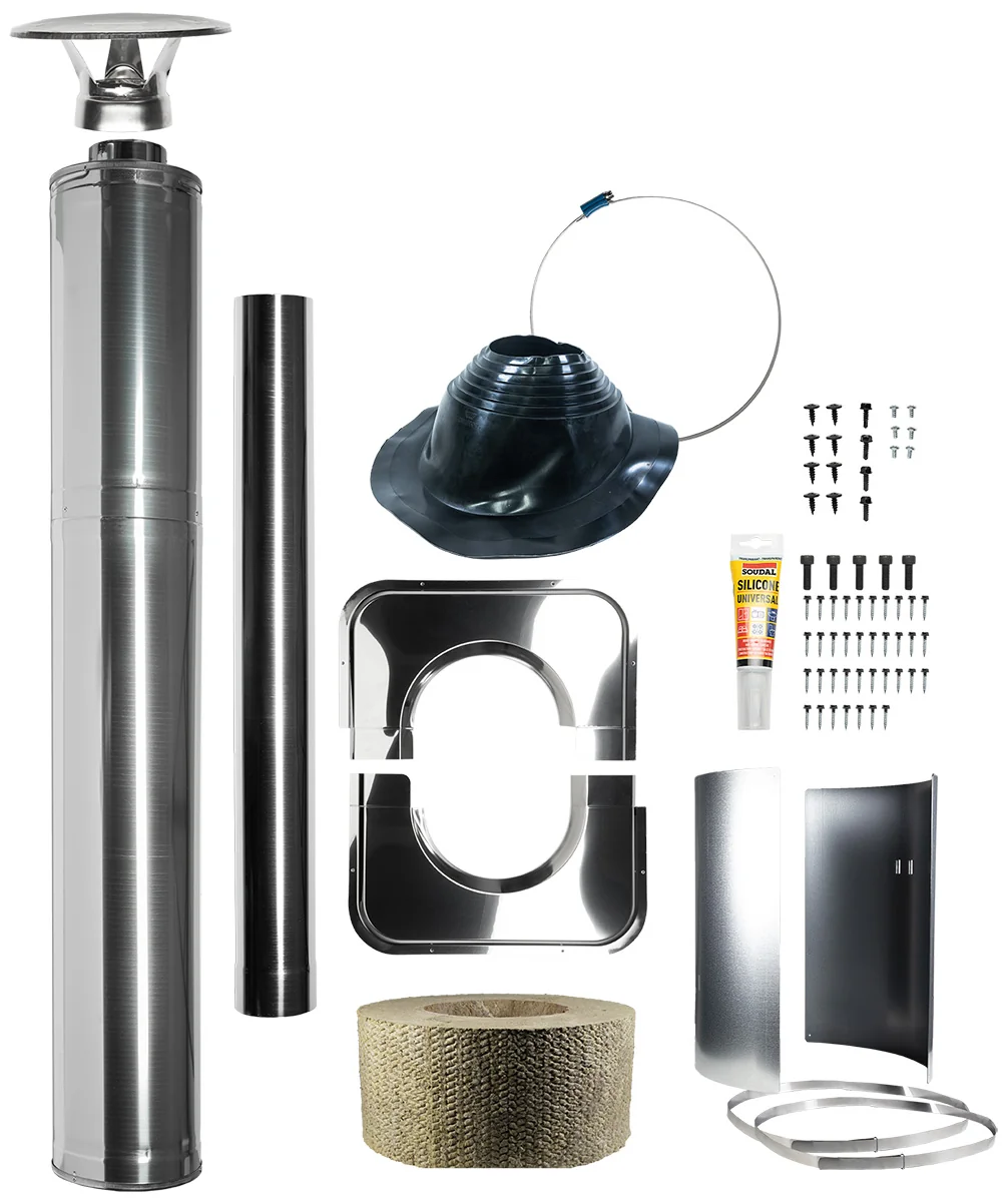 Harvia WHP1500 är en modulskorsten i rostfritt stål på 115 mm i diameter på innerröret som gör installationen av din vedeldade Harvia bastuugn både trygg och smidig. Den isolerade konstruktionen klarar stora temperaturskillnader och passar perfekt i bastubyggnader, fritidshus och mindre kaminer där du vill ha en säker och snygg skorstenslösning.