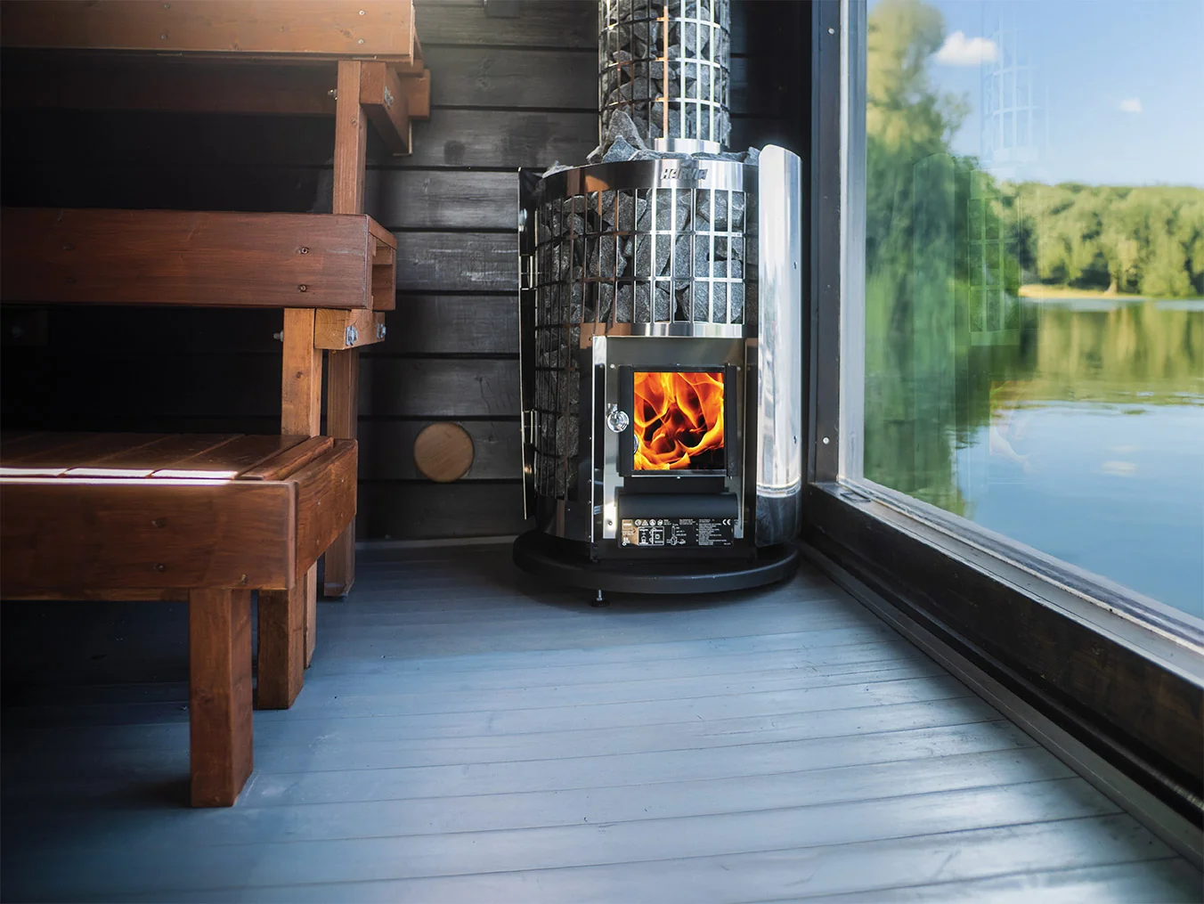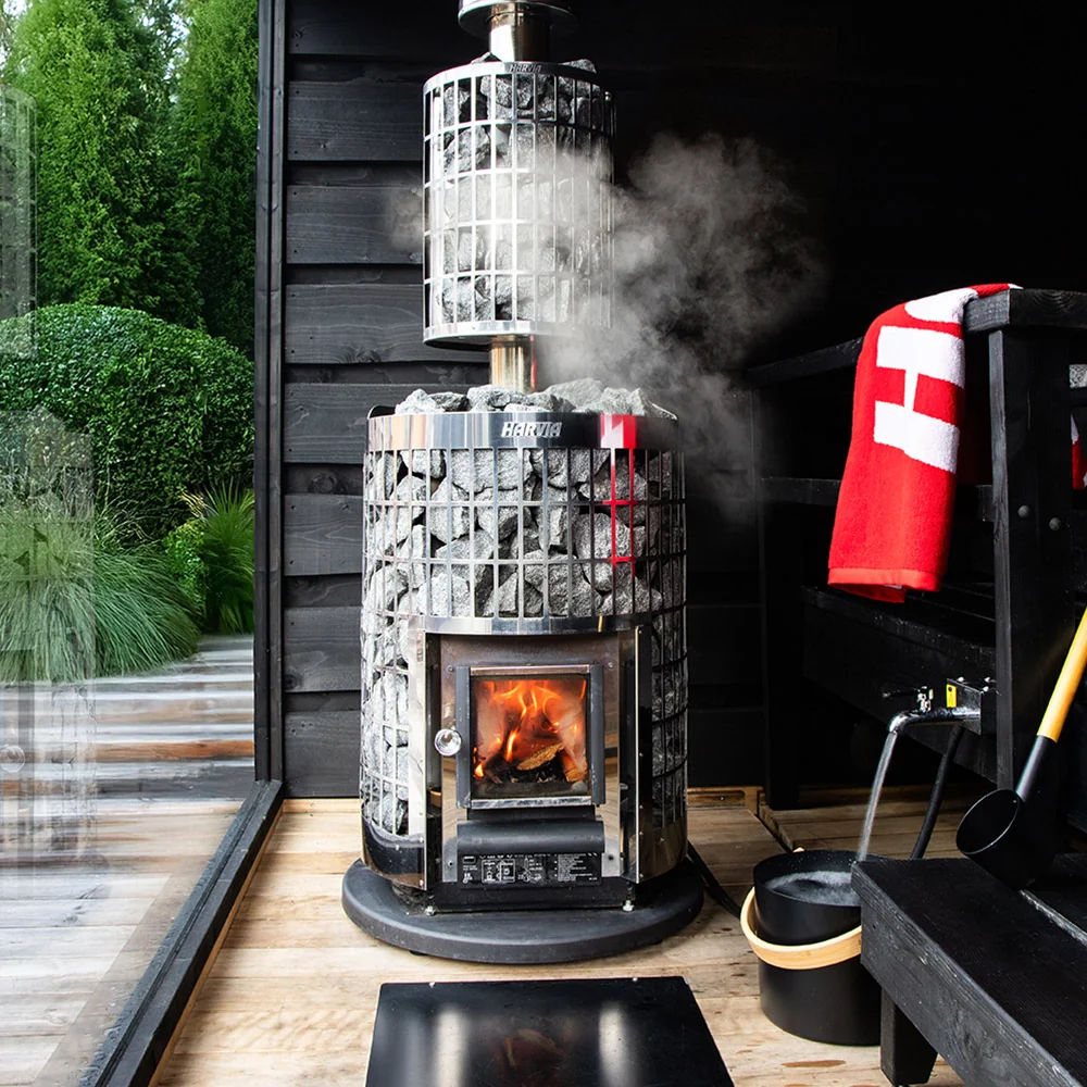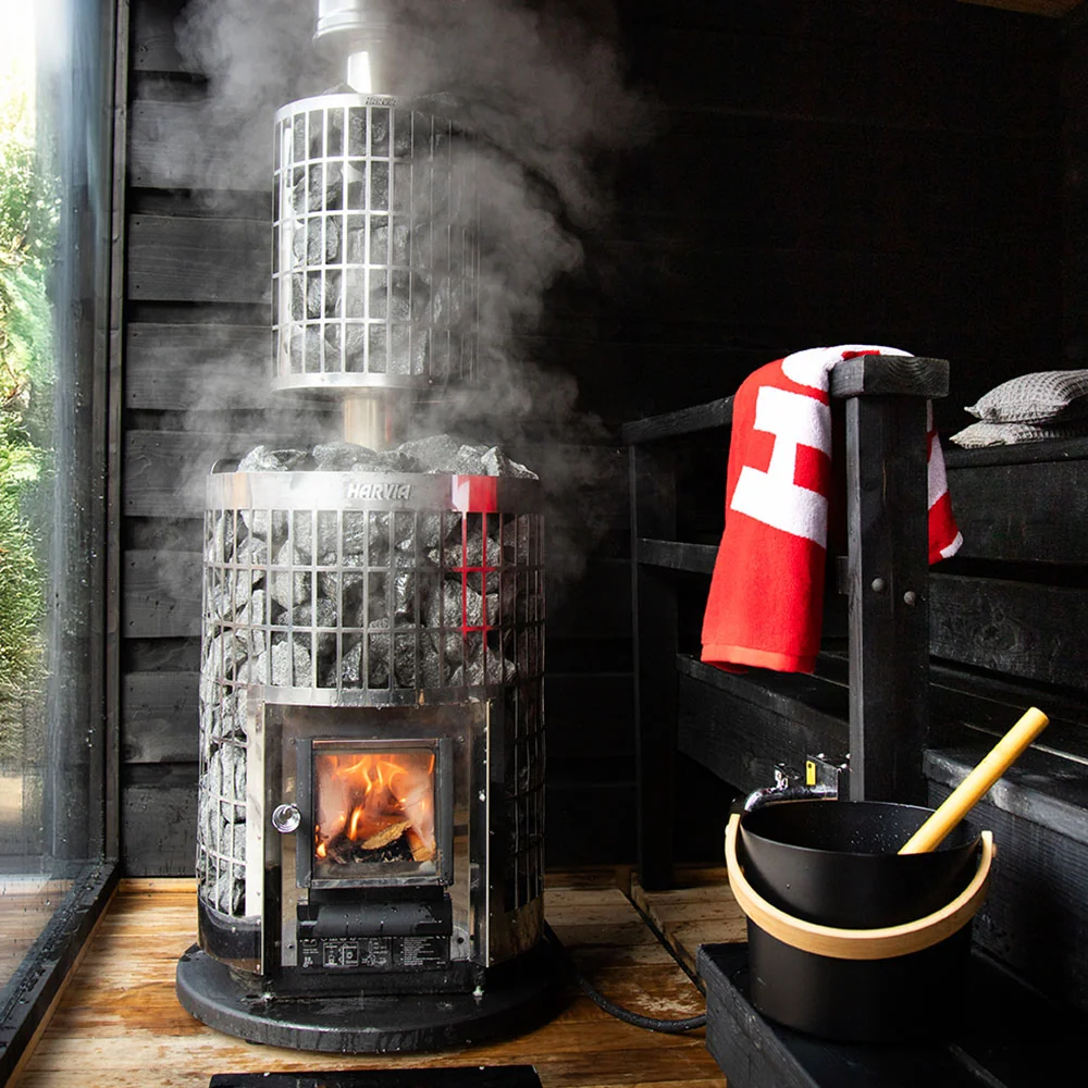 Harvia Cilindro är ett modernt vedeldat bastuaggregat i pelarform, utvecklat för dig som vill ha kraftig ånga och möjlighet att ösa rikligt med vatten på stenarna. Med sitt mycket stora stenmagasin ger denna vedeldade bastuugn en mjuk och behaglig värme som passar perfekt för längre och mer ångrika bastubad.
