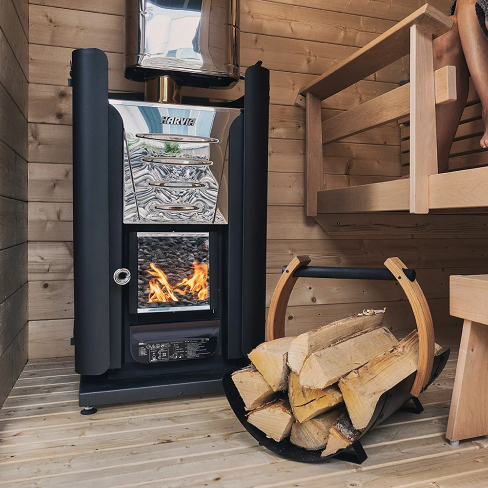 Skyddsväggen monteras direkt på bastuugnen och följer dess form. Eftersom Harvias skyddsväggar är framtagna för varje specifik modell får du både rätt passform och trygg installation.