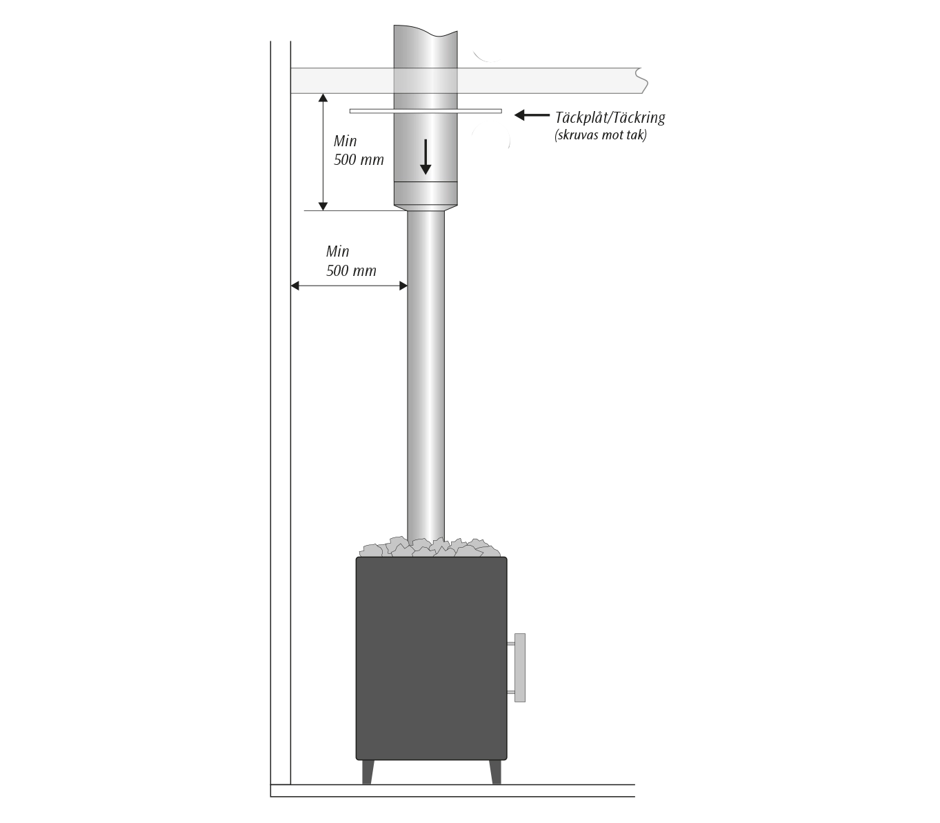 Ytterhöljet är målat i grafitsvart och detaljerna i rostfritt stål ger ett slitstarkt och lättskött utförande som passar både moderna och traditionella bastur.