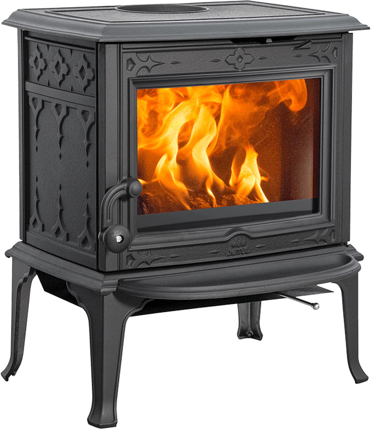 Jøtul F 100 Eco.2 LL är en kompakt kamin med en liten invändig asklösning som gör det enkelt att tömma askan. Kaminen har en stor glaslucka i traditionellt norskt hantverksmönster som ger en fin upplevelse av elden. Jøtul F 100 Eco LL SE levereras med plan front utan spröjs.