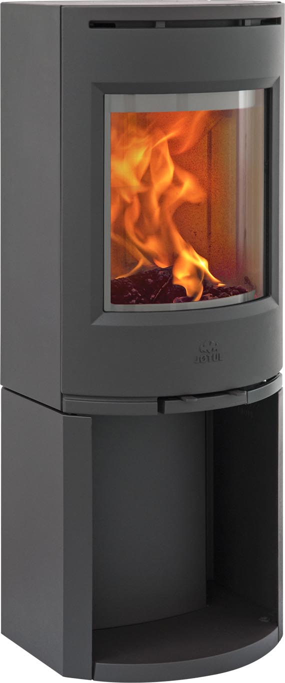 Jøtul F 130-serien är en modern, hög och stilren braskamin. För hus med lågt energibehov är den här braskaminen ett idealiskt alternativ. Den är kompakt och utvecklad för att fungera optimalt på låg effekt. Du kommer att uppskatta både de fina värmeegenskaperna och att du ser så mycket av elden genom det rena glaset. F 130-serien är renbrännande med ett modernt förbränningssystem som både renar röken från partiklar och gör den mer effektiv, vilket minskar vedförbrukningen med upp till 40 procent. Integrerad konvektion gör att den kan installeras nära brännbart material. Ytan i svart matt lack ger F 130-serien ett stilrent formuttryck. Välj mellan sockel eller pelare och med eller utan sidoglas. Bakom den här kaminserien står den prisbelönta designbyrån Hareide Design. Jøtul F 134 är en kamin med sockel utan sidoglas. Den kan placeras 10 cm från brännbart material bakom och 7,5 cm avstånd i hörn, vilket är mycket bra.