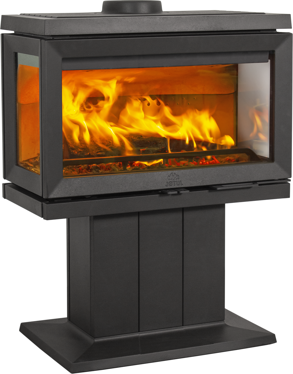 En stor braskamin med unik design som ger mycket värme. Denna braskamin har flera praktiska funktioner som gör den enkel att använda. Den har en stor och rymlig kokplatta som lämpar sig bra till matlagning med flera kastruller. Här kan du även varmhålla mat och dryck. Kaminen är försedd med tre stora glas som ger god insyn över lågorna från flera håll i rummet. Ytbehandling på alla glas och luftspolning bidrar till att hålla glasen renare. Användarvänliga luftventiler gör det enkelt att tända och elda och en brasbegränsare i brännkammaren och ett snäpplås i luckan gör eldandet tryggt och säkert.