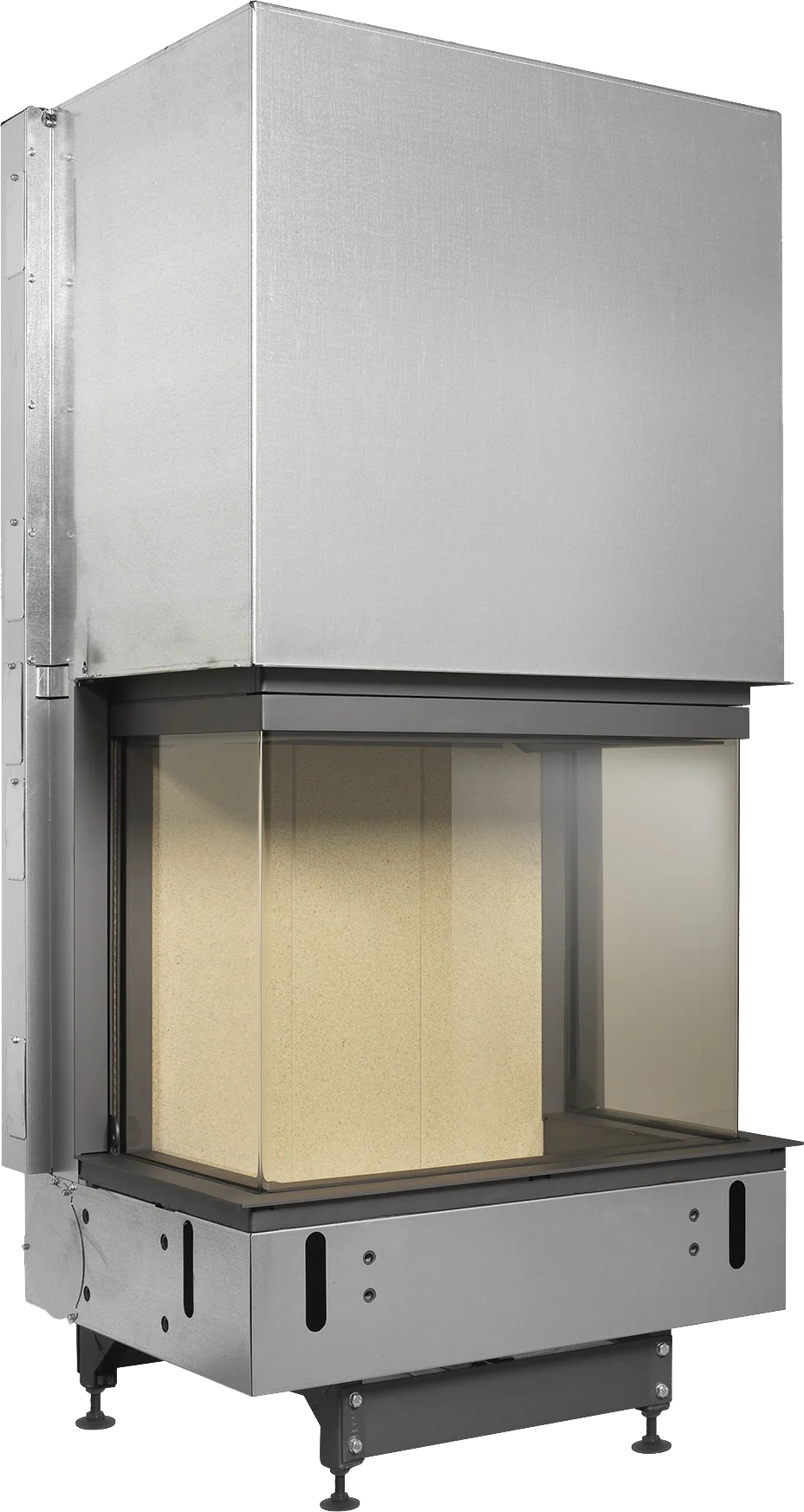 Kalfire W66/48S är en tekniskt fulländad insats –framför allt ger hissluckan med glas på tre sidor maximal insyn till elden och dess unika lösning för luften gör att den fungerar lika bra med lyckan öppen. En ren njutning för ögat. En elegant eldstad som fyller rummet med värme och trivsel.