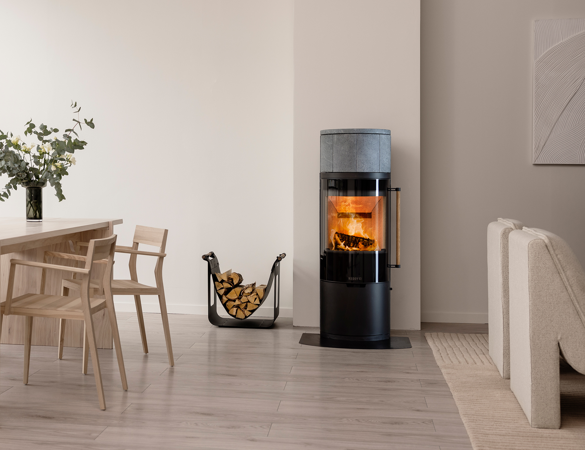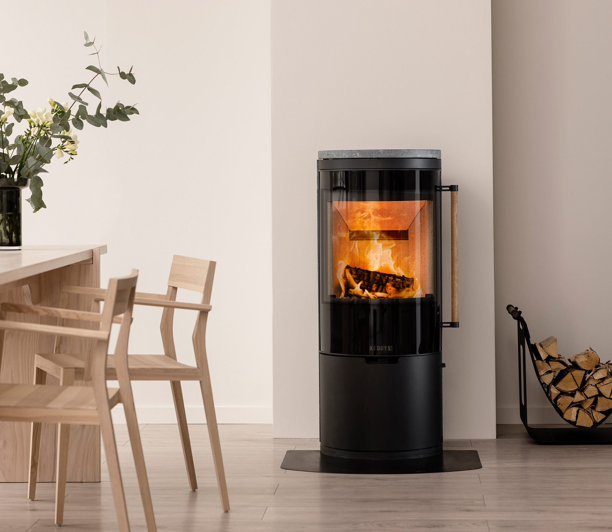 Keddys K600 är en snygg cylinderformad kamin med stort panoramaglas på 160 grader för bästa insyn.