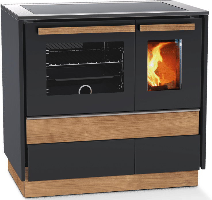 Vedspisen Dachstein Alpin från Lohberger är en vacker kombination av äkta trä, sten och modern design. Alpin inspirerar till matlagning med sina handtag av trä och ytor av sten. Alpins raka design och mattsvarta yta tillsammans med de mysiga lågorna värmer ditt hjärta.