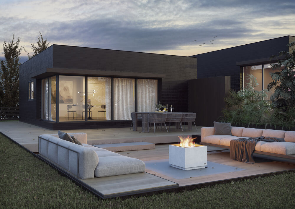 Air är en uteeldstad med raka och moderna linjer. Omramningen är i betong med en tålig och rejäl eldskål i gjutjärn som gör att du kommer kunna nyttja denna utekamin länge.