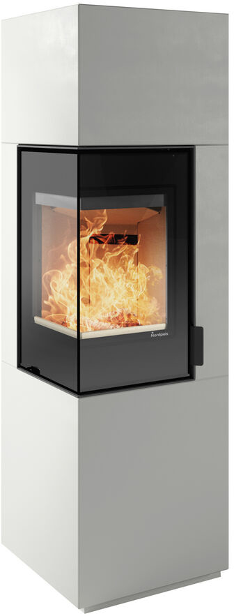 Nordpeis Odense Exclusive har externt glas som ger ett renare utseende och fin flambild. Dolt luftintag i sockeln är både funktionellt och stilrent. Du kan välja mellan hög och låg modell. För båda modellerna är det möjligt att installera en vedhylla bredvid eldstaden som tillval. Välj LED-belysning i sockeln om du vill ha en unik eldstad. Ljuset längst ned ger eldstaden en svävande känsla.