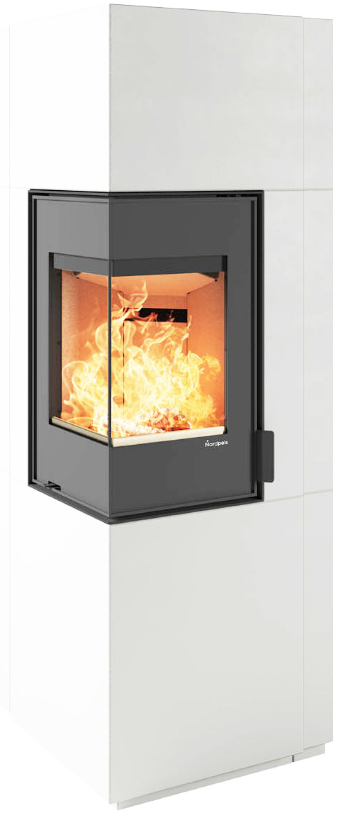 Nordpeis Odense Exclusive har externt glas som ger ett renare utseende och fin flambild. Dolt luftintag i sockeln är både funktionellt och stilrent. Du kan välja mellan hög och låg modell. För båda modellerna är det möjligt att installera en vedhylla bredvid eldstaden som tillval. Välj LED-belysning i sockeln om du vill ha en unik eldstad. Ljuset längst ned ger eldstaden en svävande känsla.