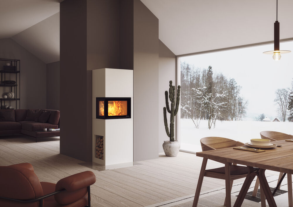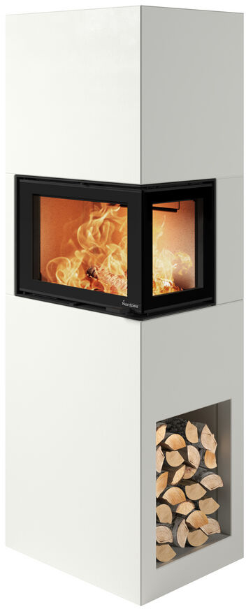 Nordpeis Pisa är en enkel och stilren eldstad med insyn till lågorna från två sidor och ett dekorativt vedfack på sidan. Det går att välja till ett extrafack på sidan. Pisa har en integrerad brandvägg som gör att den kan placeras direkt mot en vägg av brännbart material.