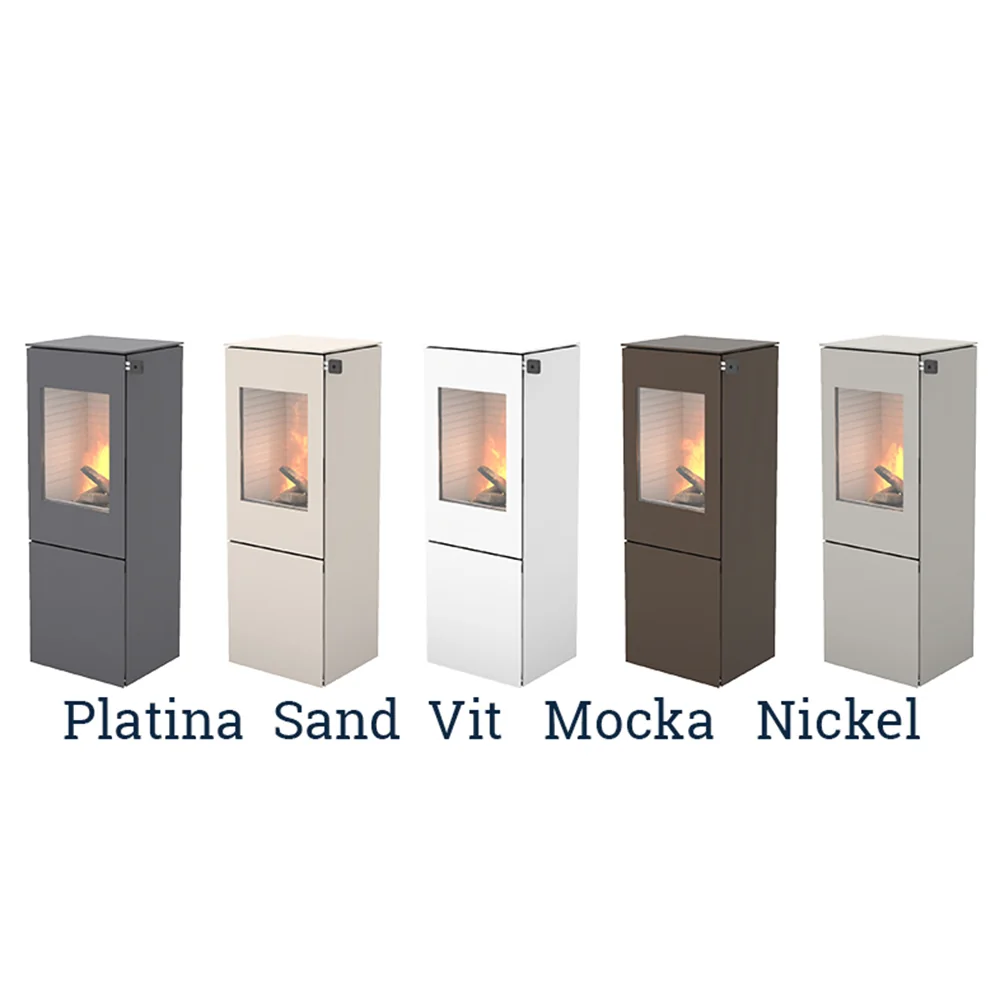 Kaminen kan väljas i flera olika färger (svart är standard), ditt individuella val avgör färg, handtag, höjd med mera. En supermodern kamin – även när vi pratar kvalitet, förbränning och miljö. Finns med manuellt spjäll (standard) eller med CleverAir, som automatiskt styr luftregleringen och säkrar optimal förbränning. Denna modell finns även som gaskamin.