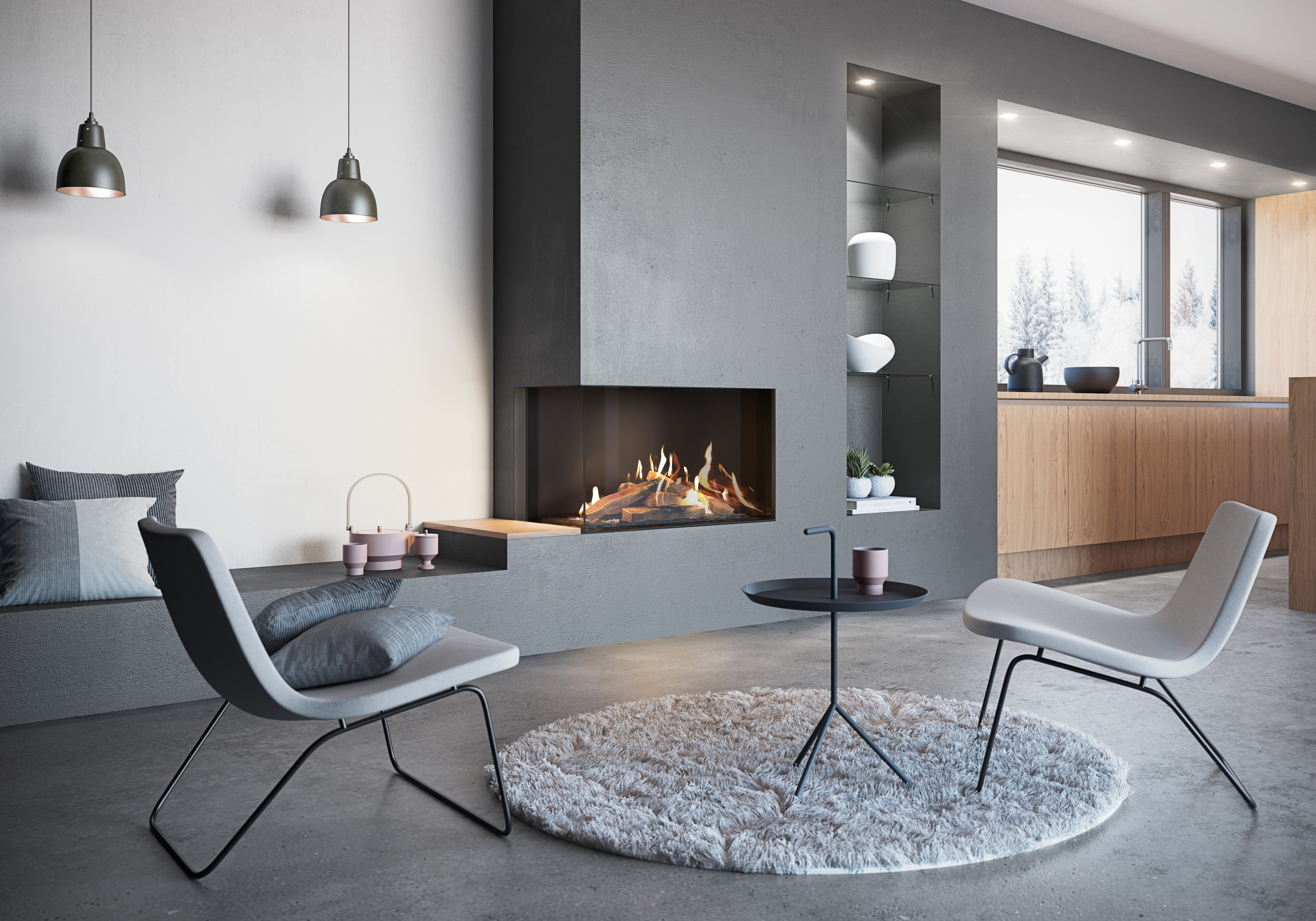 RAIS Visio 90 LC är den mellanstora hörnmodellen med glas på vänster sida. Med denna gaskamin kan du kan njuta av brasan från två håll och skapa en mysig vrå där hemma. De harmoniska, naturtrogna lågorna styrs med ett klick på fjärrkontrollen, via din surfplatta eller telefonen. Ramen finns i svart eller rostfritt stål. Kan anslutas till naturgas, stadsgas, gasol eller biogas.