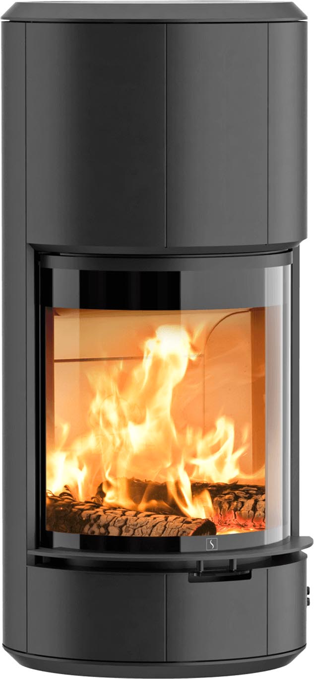 Ibland måste man gå ”all in”. Scanspis 87 är en riktigt stor braskamin som ger dig mycket värme, ett tungt och gediget intryck och blir en naturlig samlingspunkt i rummet. Serien består av två varianter; en som står som en rejäl bauta på golvet och den väggmonterade varianten som serverar lågor nästan pittoreskt flytande. Blicken dras naturligt mot den iögonfallande hissluckan i glas med en upphöjd öppning som presenterar lågorna i en ljus förbränningskammare med 160-graders sikt. Kaminens form, de svarta glasdetaljerna med det svala glashandtaget och den rundade askläppen kombinerar design och funktionalitet perfekt.