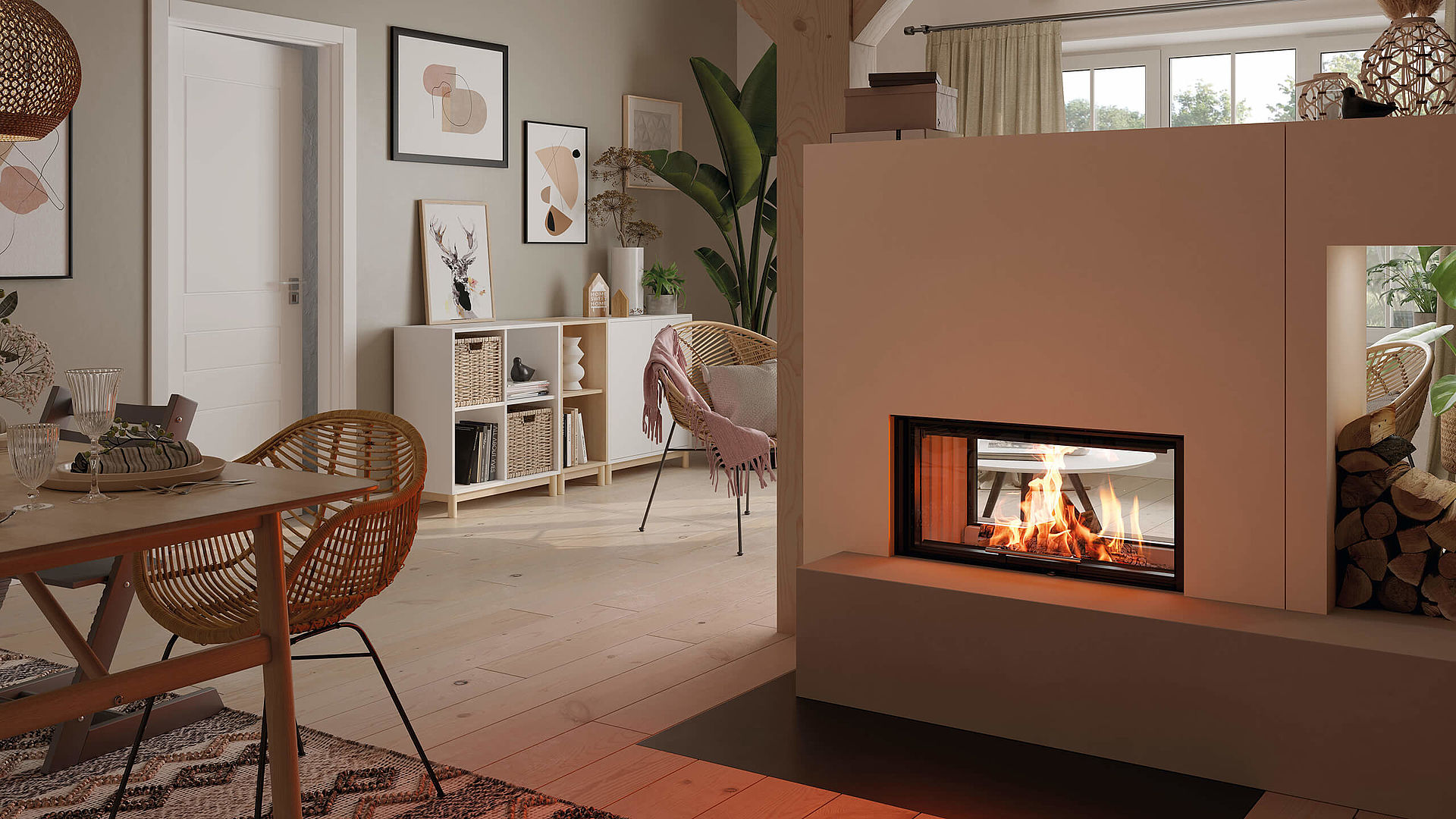 Kamininsatsen Spartherm Varia AS-FDh erbjuder fantastiska möjligheter som en rumsavdelare utöver det vanliga. Med sitt eleganta widescreen-format (730x371 mm) och genomsyn-design länkar denna eldstad samman två rum lika effektivt som den sprider sin värme till övriga delar av ditt hem. Tänd en brasa, upplev den från två håll och känn värmen spridas i hela ditt hem! Spisinsatsen är tillverkad med Spartherms erkänt smarta teknik för stiliga flammor, perfekt rumstemperatur och låg vedförbrukning. Automatisk motorstyrd lucka, svart eldstdsinredning samt appstyrning av den smarta tekniken finns som tre av flera spännande tillval. Insatsen Varia AS-FDh erbjuder oändliga möjligheter när det kommer till omramningar och inbyggnad.