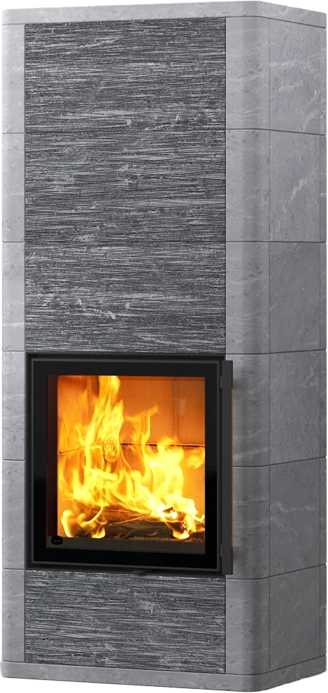 Salvo S är tillverkad av täljsten och dess elegans stämmer från den harmoniska plattsättningen och de rundade hörnen. Salvo S har en smalare täljstensomramning än Salvo. Till eldstadens ytmaterial kan du välja antingen endast klassiskt släta täljstenar eller en kombination av släta stenar och dekorationsstenar. Den moderna kvadratiska luckan skapar en vacker vy in i eldstaden. Ovan- och underdelen av luckan i Salvos front kan dekoreras med stenar som får olika täljstensytor att mötas på ett elegant sätt. Dekorationsstenarna har oregelbunden Grafia-prägling, som lyfter fram stenarnas skimmer. I Salvo S-modellen lagras värmen på ovansidan av luckan i täljstenen.